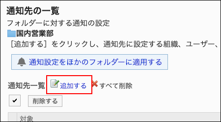 「通知先の一覧」画面で、[追加する]をクリックします。