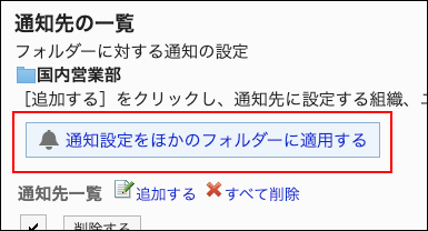 「通知先の一覧」画面で、[通知設定をほかのフォルダーに適用する]をクリックします。