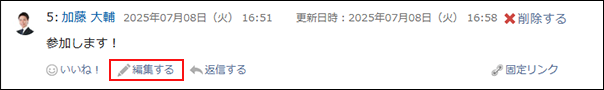 書き込んだコメントは、1時間以内であれば編集できます。編集する場合は[編集する]をクリックしてください。ただし、宛先と添付ファイルは変更できません。
