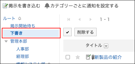 下書きの掲示は、「下書き」カテゴリーに保存されます。