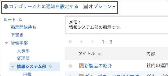 「掲示板」画面で、カテゴリーを選択し、再利用する掲示のタイトルをクリックします。