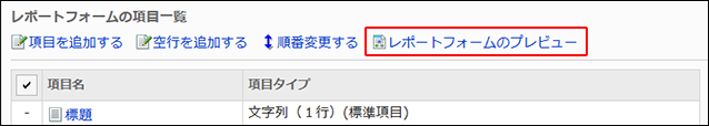 「レポートフォームの詳細」画面で、「レポートフォームの項目一覧」の[レポートフォームのプレビュー]をクリックします。