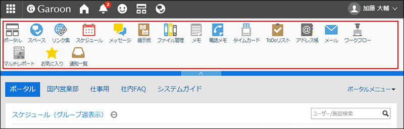 アプリケーションメニューに、Garoonのアプリケーションやよく使う外部のWebサイトへのリンクを追加します。