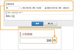 - 数値フィールドに単位記号表示