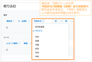 - 日付フィールドの絞り込み条件を追加