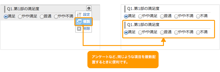 フォーム作成画面で、フィールドのコピーができるようになります。アンケートなど、同じような項目を複数配置するときに便利です。