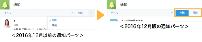 ポータルの通知パーツの未読/既読を1クリックで切り替えできるようになりました。