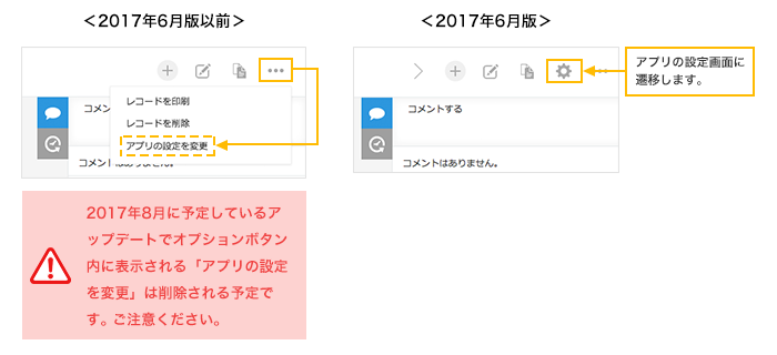 「アプリの設定」のリンクがレコード一覧、レコード詳細画面に追加されました。