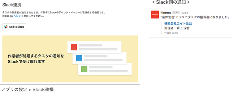 kintoneのプロセス管理で、作業者に割り当てられた時に連携しているSlackにダイレクトメッセージで通知することができるようになりました。