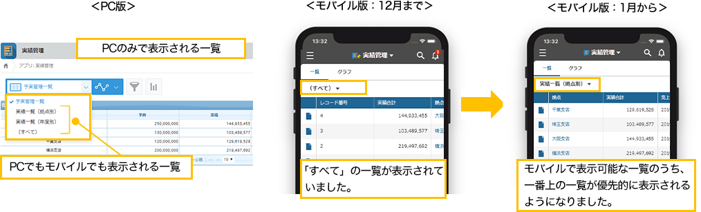 PC版でしか表示できない一覧がデフォルトビューになっているとき、かつ、アプリのトップを開いたとき、モバイルでアプリを開いた際に表示する一覧を変更できるようになりました。