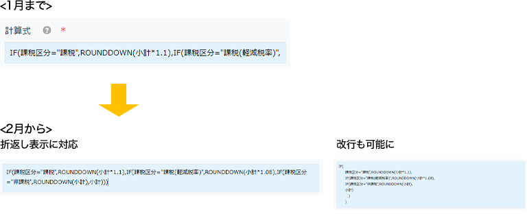 計算式を複数行にわたって入力できるように改善し、計算式を入力しやすくなりました。