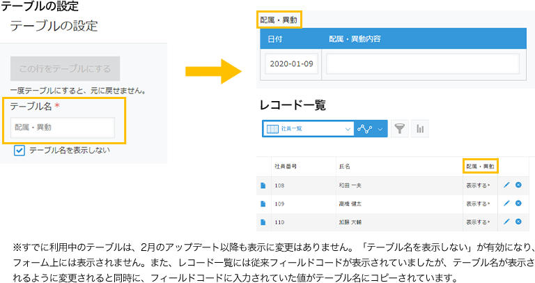 設定したテーブル名は、アプリのフォームやレコード一覧に表示されます。