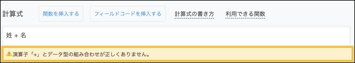 演算子と型の組み合わせが適切でない計算式が入力された際に、計算式の入力箇所の下部にメッセージが表示されます。